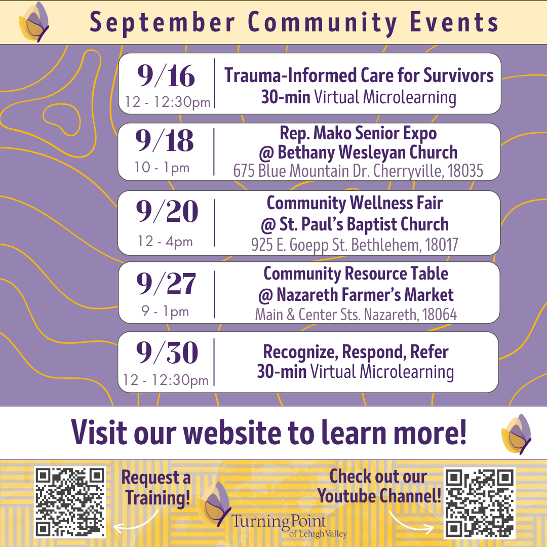 To help you take action and raise awareness this October during Domestic Violence Awareness Month (DVAM), Turning Point of Lehigh Valley has created a set of easy-to-use resources you can download and share.