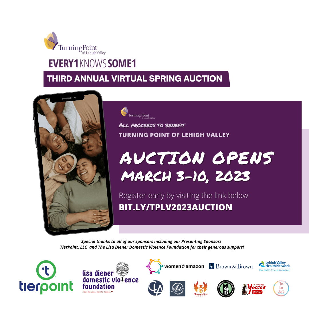 Our Third Annual Virtual Spring Auction was huge success, raising over $23,000 for survivors of domestic and intimate partner abuse and their families throughout the Lehigh Valley. Thank you to everyone who made this auction a reality, including our sponsors!