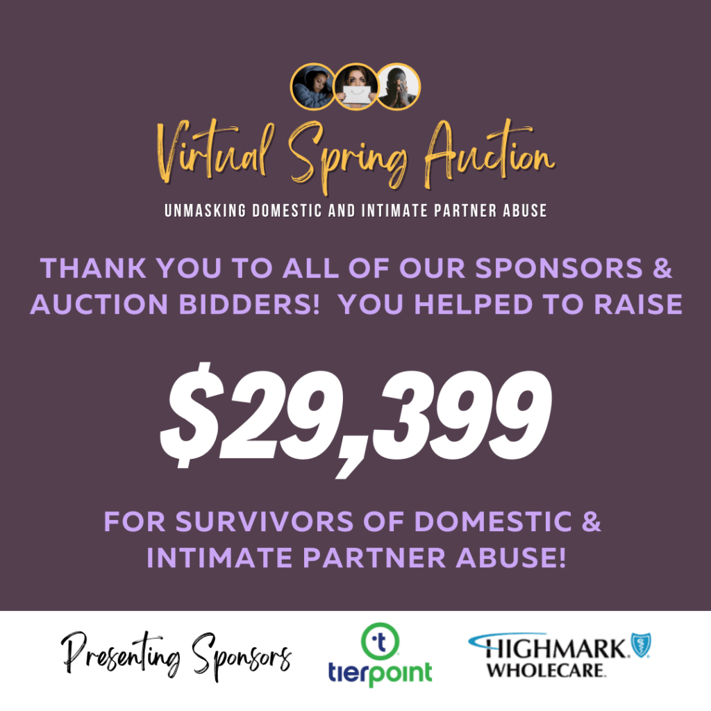 Our Third Annual Virtual Spring Auction was huge success, raising over $23,000 for survivors of domestic and intimate partner abuse and their families throughout the Lehigh Valley. Thank you to everyone who made this auction a reality, including our sponsors!